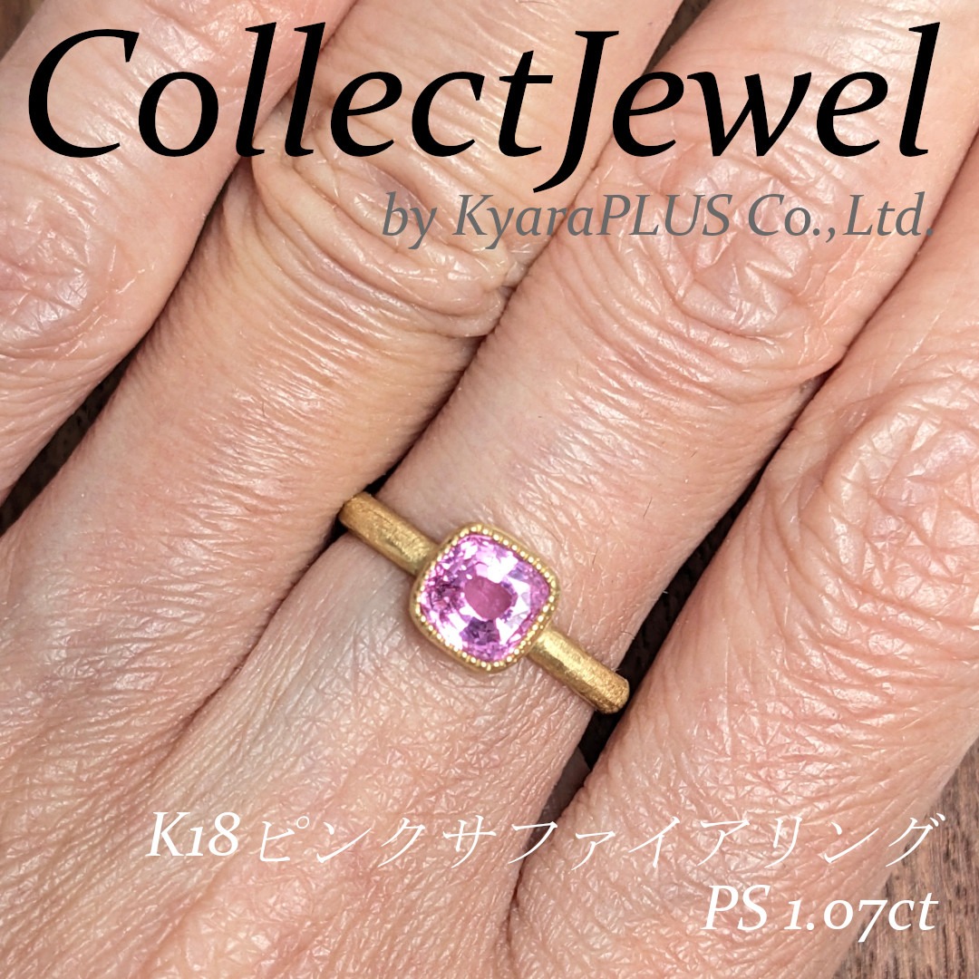 甘やかなピンクの色合いが魅力のサファイアに、艶消しのイエローゴールドがやわらかく寄り添うリング。どこかアンティークな趣を感じさせつつ、モダンさも併せ持つ絶妙なバランスの一品です。