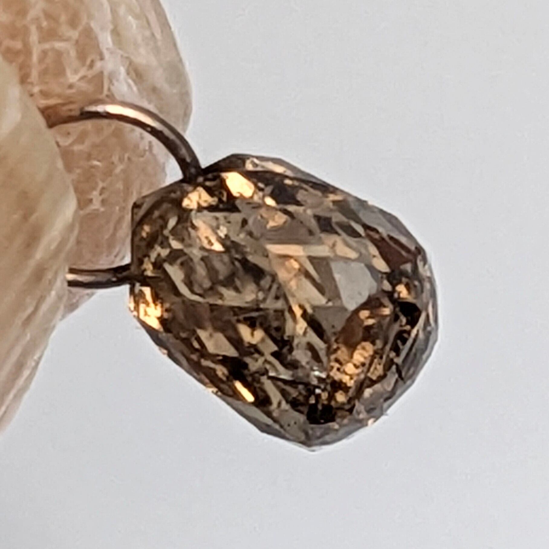動きに呼応して、キラキラと輝きが零れ落ちる一品。ブリオレットカットのブラウンダイヤモンドを使用した、とても可憐なピアスです。ブラウンカラーの輝きに、より馴染むようにセレクトされたちょっと濃いめのピンクゴールドがとても良くマッチしています。あなたが振り向き、時には小首を傾げ、キャラキャラと笑い転げるその耳元で、より表情に輝きを添えてくれる心強いアイテムです。