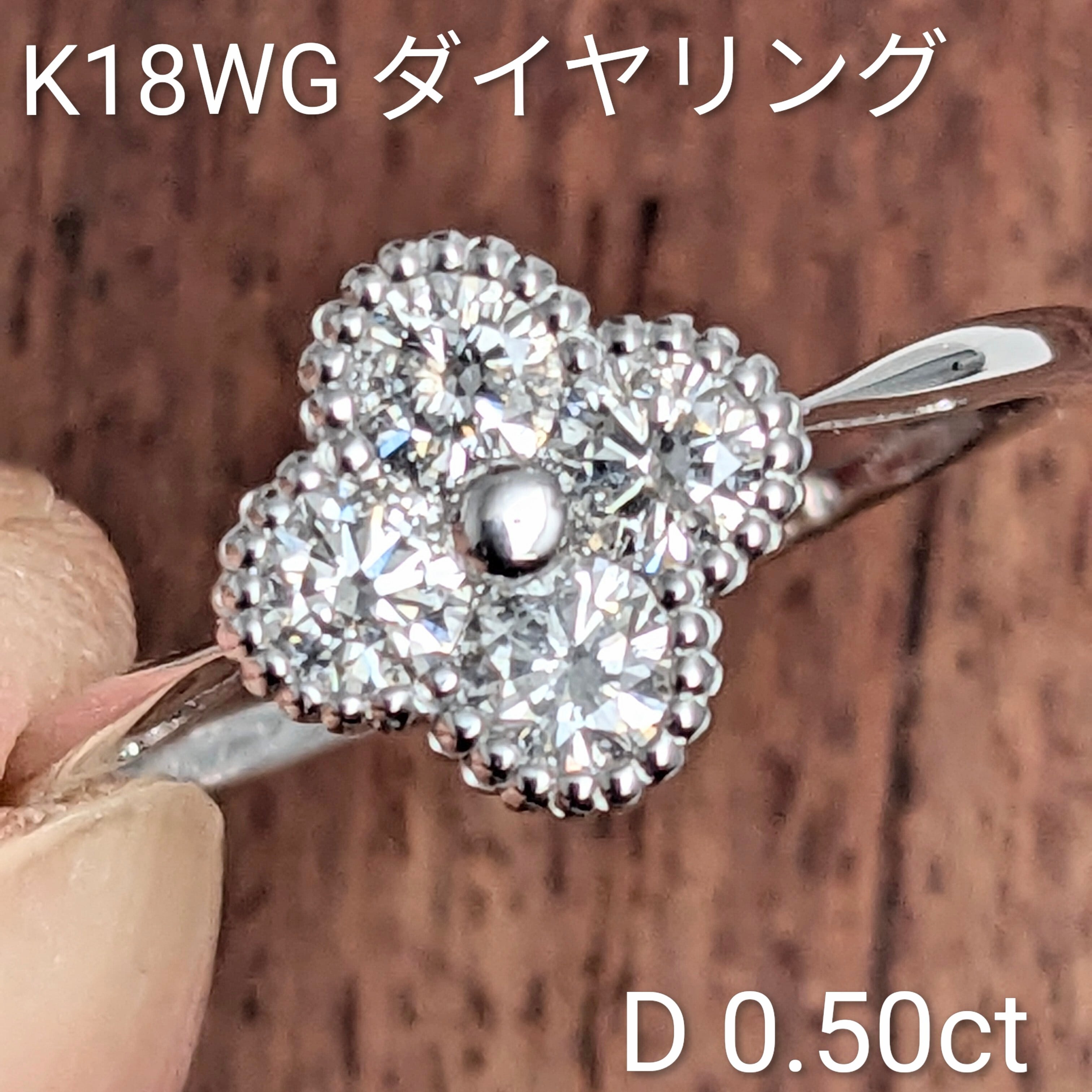 一度は誰しも、無心で探した思い出がある“四つ葉のクローバー”。幸せを運んでくれるという言い伝えのモチーフを象ったダイヤモンドのリングです。輝きの強い4ピースのダイヤモンドはミル打ちで縁取られ、その細かな艶めきとの対比でよりキラキラと美しく輝いて見えます。インクルージョンはSI-2くらいと決して少なくはないですが、肉眼でその美しさを損なうようなものではありません。幸福が、いつも貴方と共にありますように・・・。