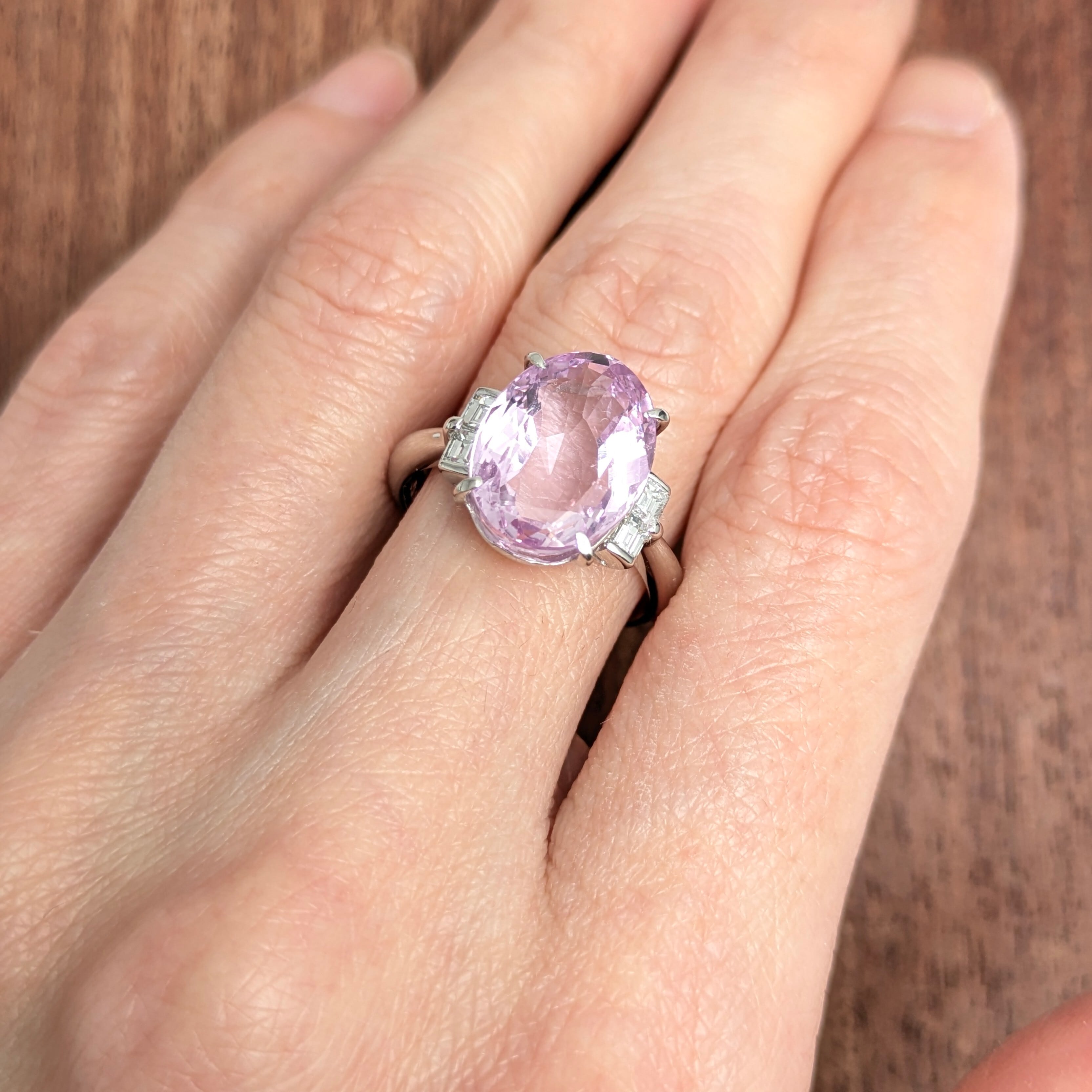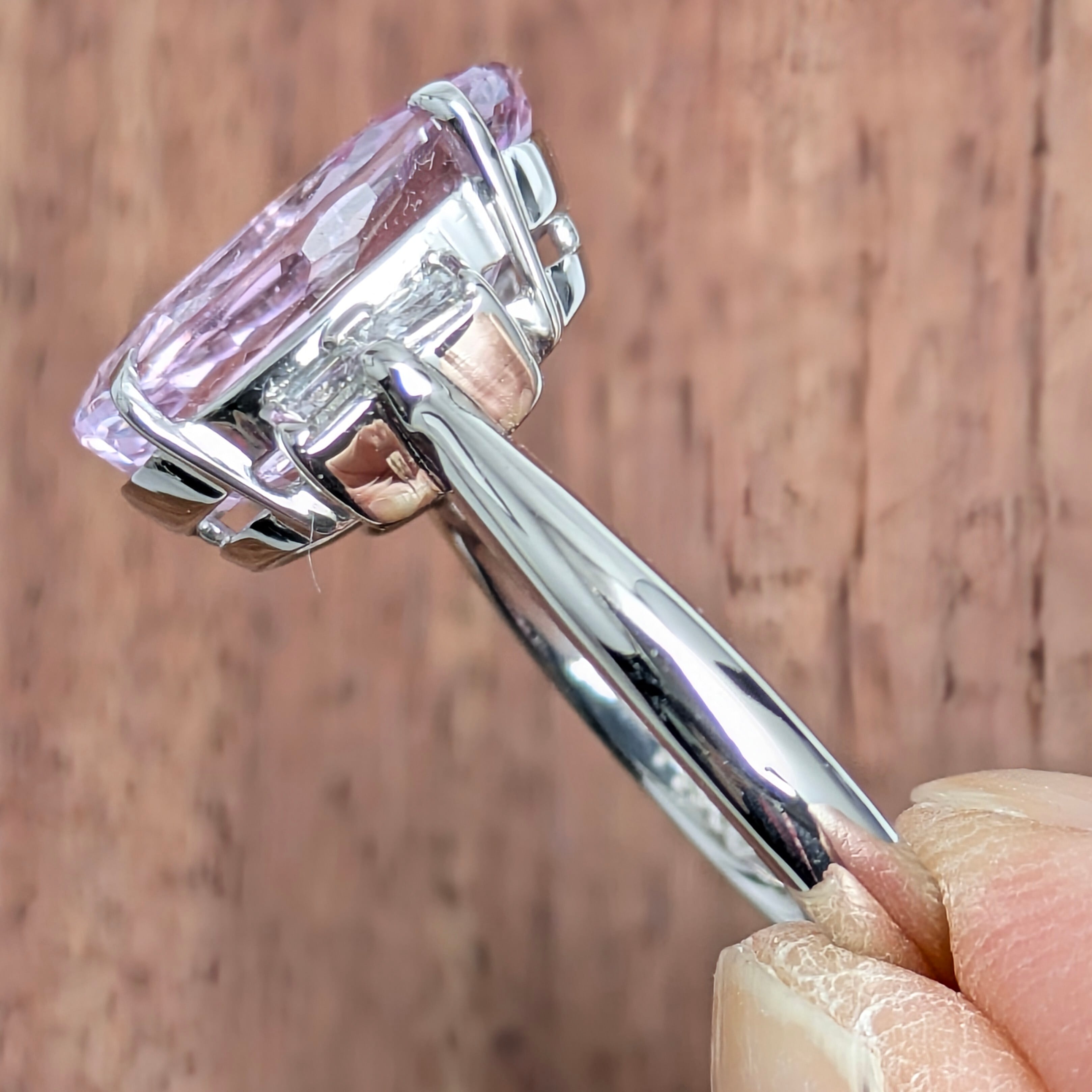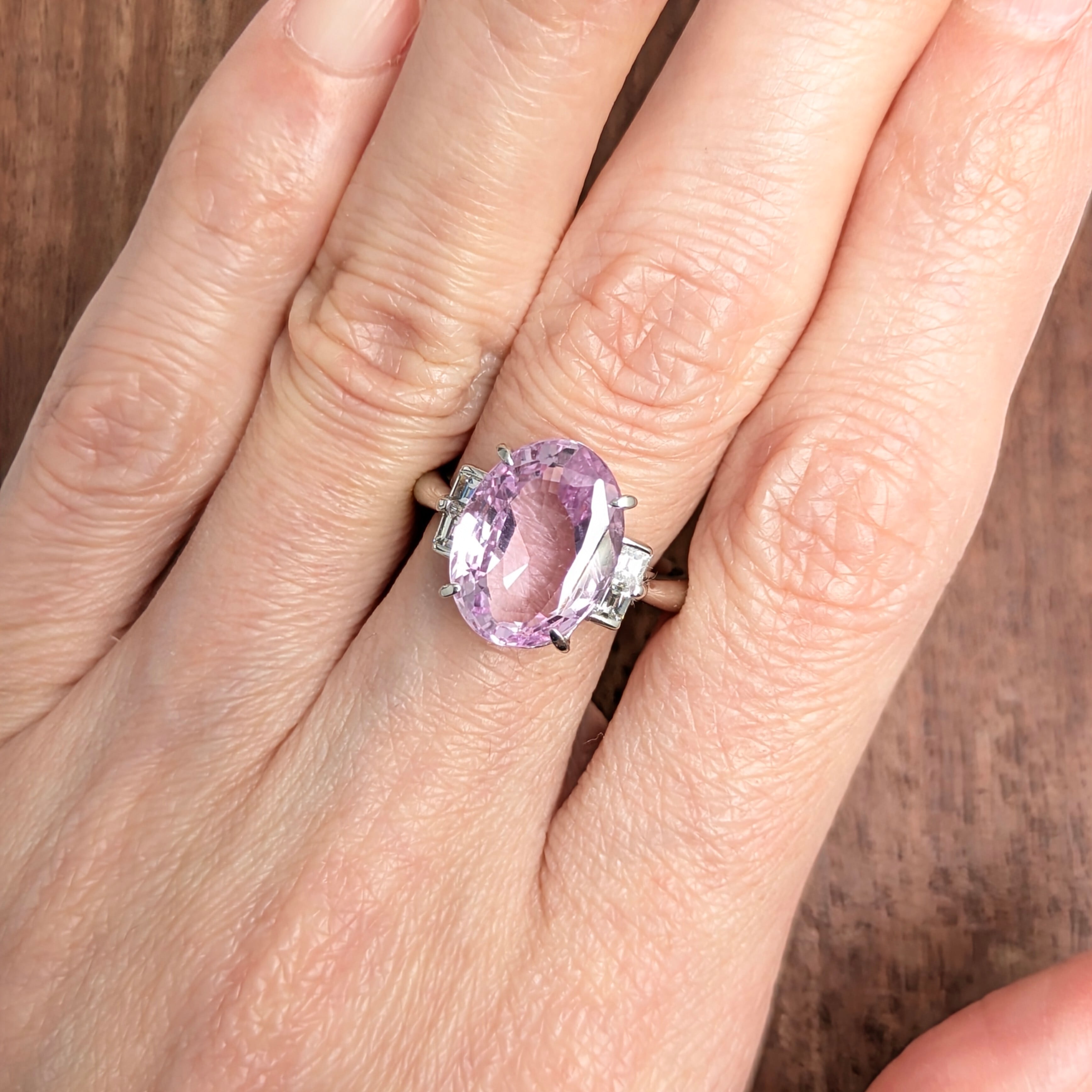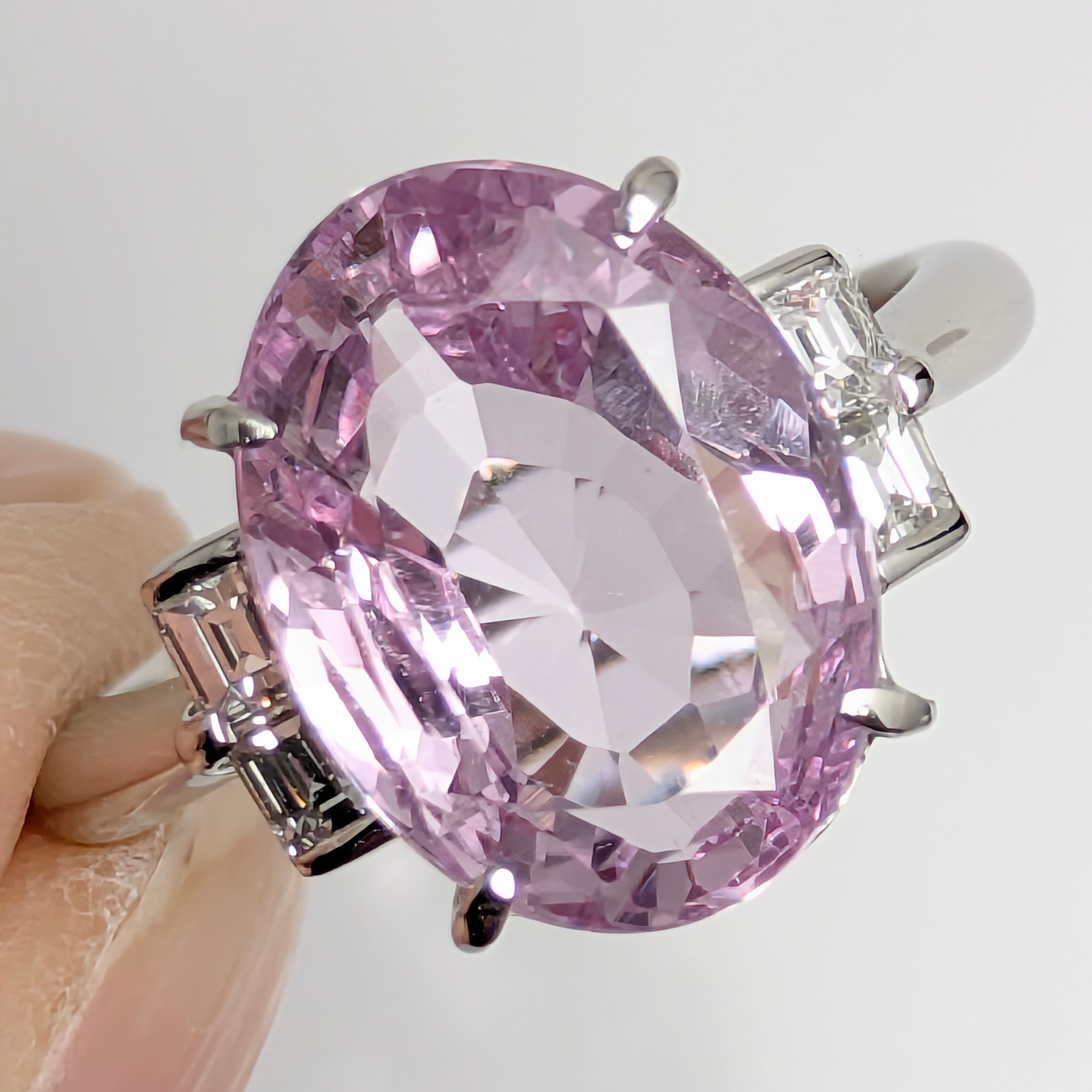 なんと、6.58ctという大粒のスリランカ産のピンクサファイアの登場です。こちらはリカットして、GIAの最新の鑑別書を作成しました。香しいライラックを思わせる可憐な色合いと、このサイズ感でまさかのこの透明感・・・!両サイドの4ピースのステップカットのダイヤモンドも、VSクラスのものが使用されています。サファイアだからこそのテリと輝きを、貴方だけのお手元で心ゆくまで堪能していただける一品です。