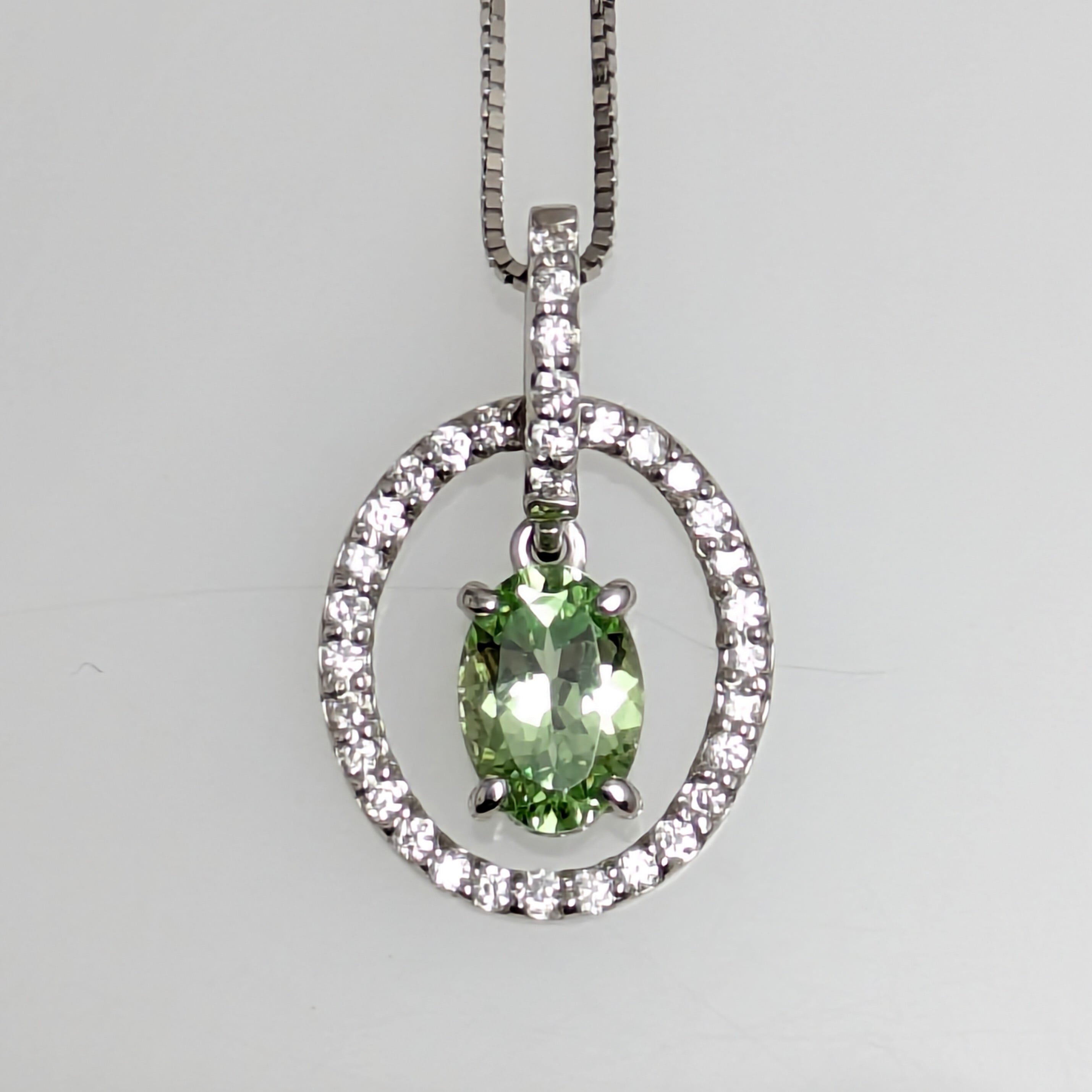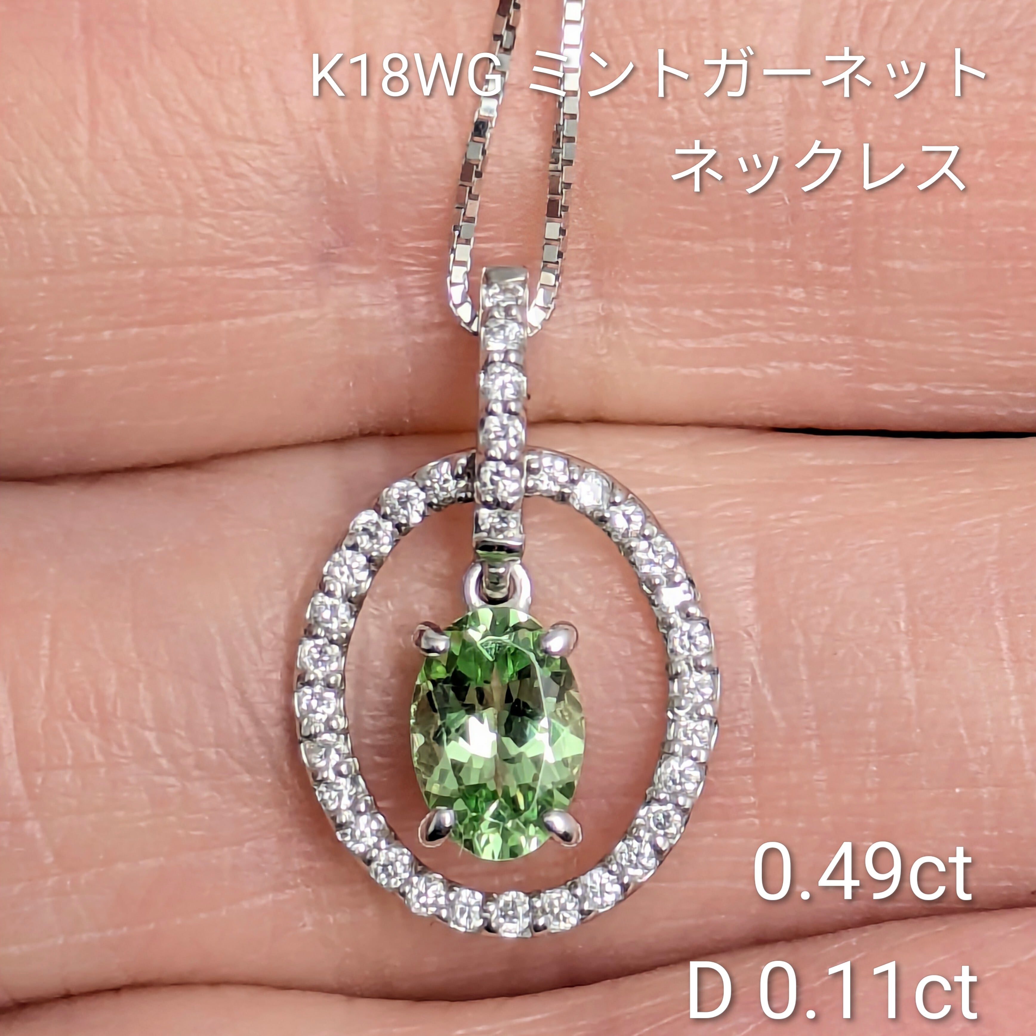 K18WGミントガーネットネックレス 0.49ct,D 0.11ct【PRO208788】