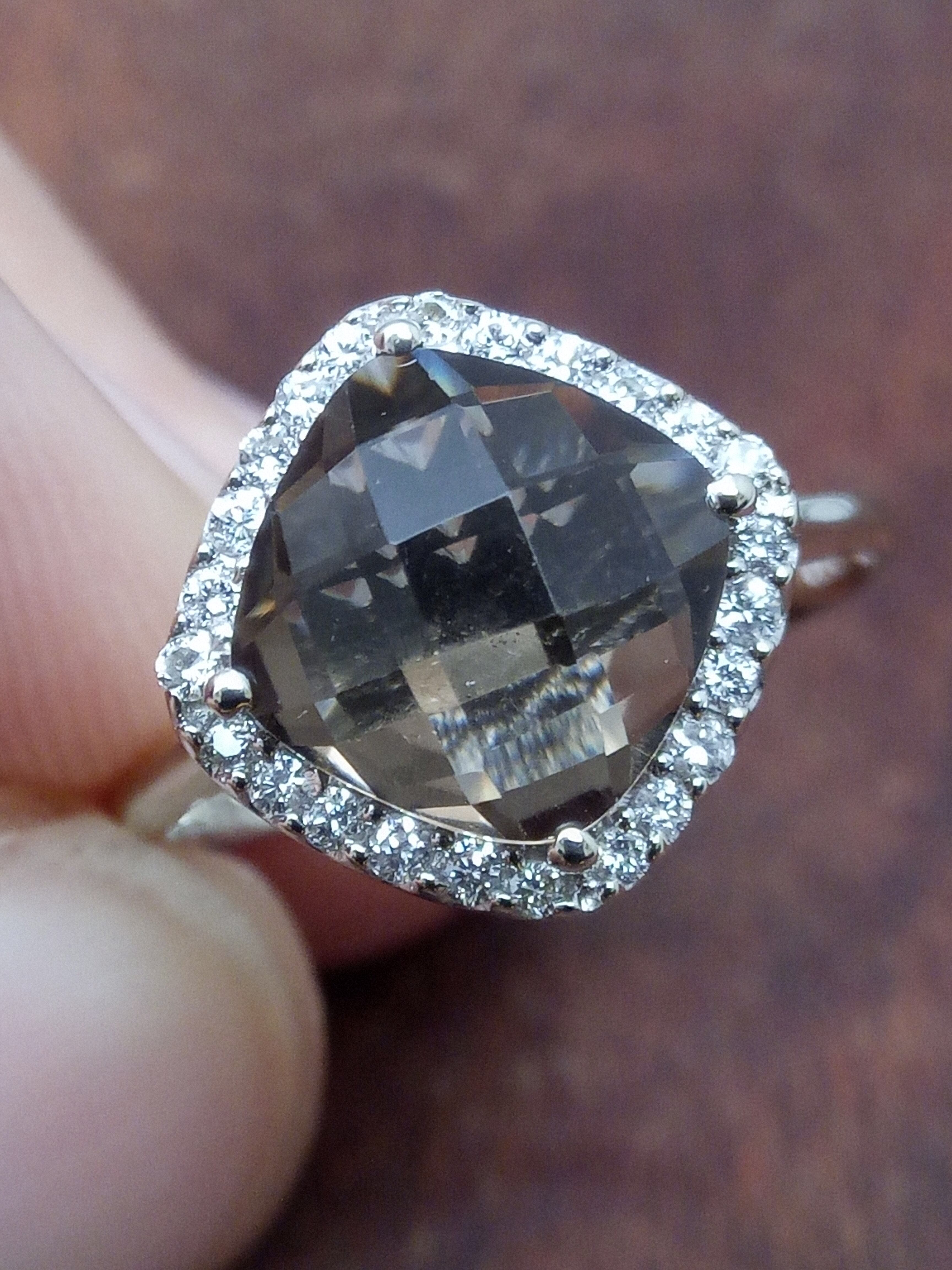 チェッカーフラッグカットが可愛い!750スモーキークォーツリングのご紹介です。